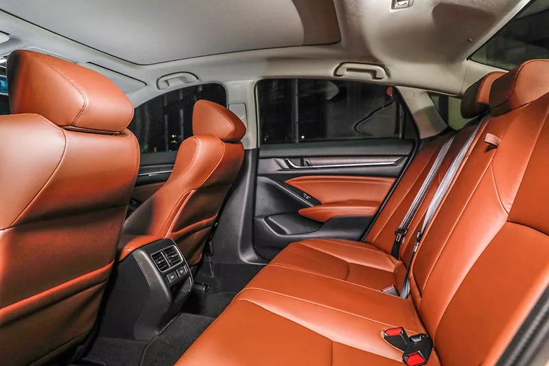或許是因為這種旗艦感,所以我選擇先體驗INSPIRE的后排,不出所料4910毫米的車身長度加上1862毫米的車身寬度保證了寬敞的車內空間,2830毫米的軸距更是讓腿部空間異常奢侈。作為“空間魔術師”的Honda,在INSPIRE也施展了自己的魔力,1米83的我都能在后排愜意地翹起二郎腿。而且第二排的靠背不僅角度恰到好處,還填充到位,再加上柔軟的觸感絕對能讓后排乘客滿意。除此之外,全景天窗的加入還可以提高頭部空間舒適度,并且營造一個更加開闊的視野與明亮的內部空間。至于中央扶手、雙USB電源以及可以通到行李箱的暗格都是大家喜聞樂見的配置。