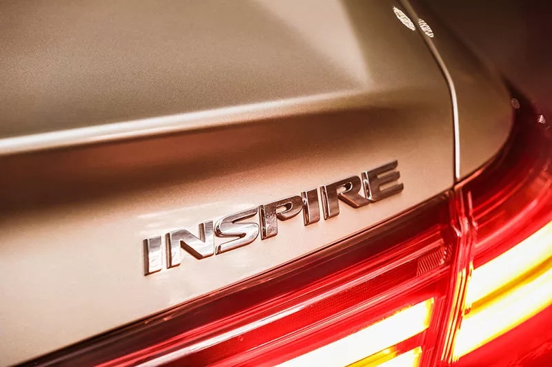 當然漂亮的前臉還離不開大燈的畫龍點睛,由6近光+3遠光共計9顆LED燈珠組成的全LED燈組像陣列般排開,無論是白天還是夜晚都讓INSPIRE更加顯目。如果你按下雙閃或者撥動轉向燈桿,就會發(fā)現INSPIRE采用了流動式轉向燈設計,隨著燈帶的流動科技感也隨之上升。來到尾部,紅色的尾燈組讓INSPIRE顯得動感十足,翹起的小尾翼以及雙邊共雙出的排氣也都為運動風格的營造做出了貢獻??偟膩碚f,INSPIRE的外觀極具魅力,時尚而不張揚,在細節(jié)處又營造了恰到好處的運動風格。尤其我們的試駕車還采用了金色車漆,更是平添了旗艦質感。