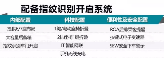 新車針對(duì)配置方面進(jìn)行了提升,配備車門(mén)指紋開(kāi)啟等科技配置。此外,該車對(duì)車身尺寸進(jìn)行了提升,主打六座車型,七座車型也將在同期上市。動(dòng)力上搭載2.0T渦輪增壓發(fā)動(dòng)機(jī)(分高低調(diào)校)。