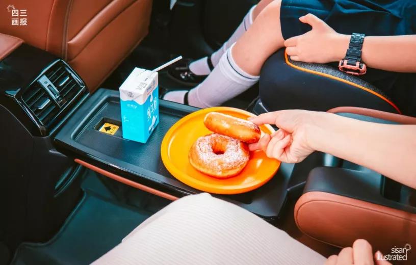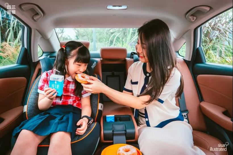 “早上一般都是他做飯,我去收拾寶寶起床、洗漱,完事再一起吃早餐,偶爾要是起晚了就只能在車上解決了。好在享域后排配了一個(gè)小桌板,能臨時(shí)當(dāng)個(gè)小飯桌,讓我喂茜茜吃飯?!本杲愀吲d的說著。