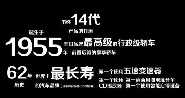 豐田品牌高級的行政級轎車,前置后驅(qū)的豪華轎車,