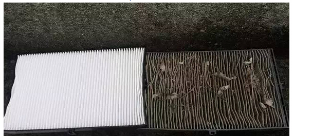 2、當在空調開著的時候聞到異味,可能是空調系統(tǒng)需要清潔了,建議清洗空調系統(tǒng)和更換空調濾清器。(注:圖中兩個空調濾清器是同個牌子,同個型號的,分別是使用前和使用后的狀態(tài))
