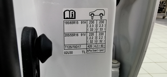 非全尺寸備用胎,標(biāo)準(zhǔn)胎壓為420 kPa;