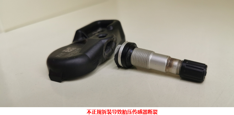 胎壓傳感器故障率極低,大多數(shù)情況都是由于補(bǔ)胎時,不正規(guī)的拆裝方法導(dǎo)致胎壓傳感器斷裂損壞。