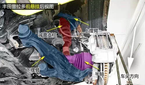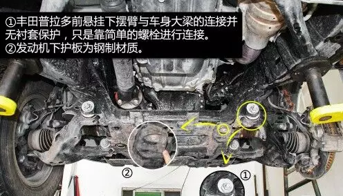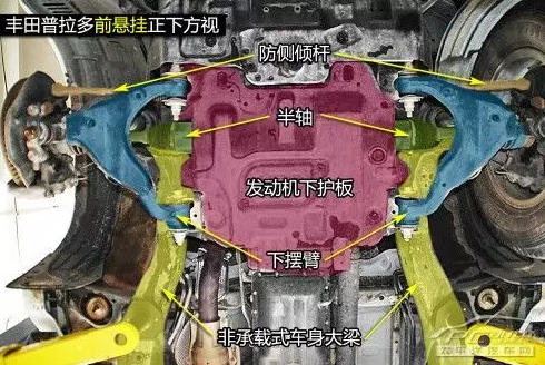 普拉多前雙叉臂式獨(dú)立懸掛在空間利用率方面雖稍遜于麥弗遜懸掛,但兩者結(jié)構(gòu)都是相當(dāng)緊湊的,且由于多了上擺臂,在抓地性和防側(cè)傾等方面的表現(xiàn)都要比后者優(yōu)秀。普拉多發(fā)動(dòng)機(jī)下方有護(hù)板保護(hù),且為鋼制。在下擺臂和車身大梁的連接方面則是使用較為簡單的螺栓連接。