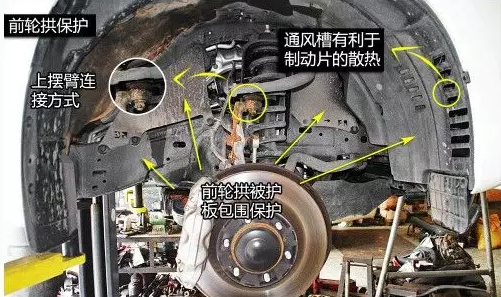 普拉多前剎車卡鉗為四活塞型,左右成對(duì)布置,相較后單活塞剎車卡鉗,其制動(dòng)效果、制動(dòng)穩(wěn)定性以及散熱效果明顯更強(qiáng)。 普拉多前輪拱被大面積護(hù)板包圍保護(hù),無隔音涂層;后輪拱在被大面積的護(hù)板包圍的同時(shí),有隔音涂層保護(hù)。