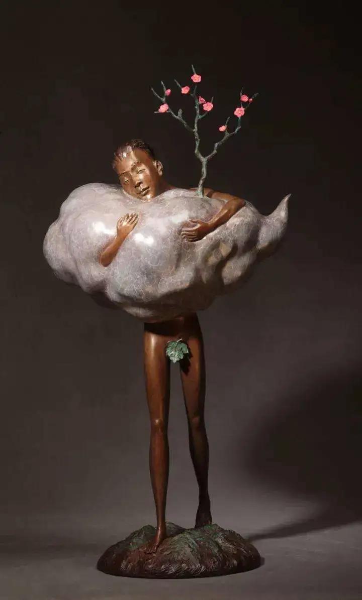 凡是駕車去到宋莊藝術區(qū)的人,在行徑宋莊環(huán)島時一定會留意到環(huán)島中間高聳的地標性的建筑,陳靈平稱它為“七層塔”。它像倒扣的喇叭,從下往上逐漸收緊,以水泥、紅磚、鋼鐵等不同的材質層層堆疊,一直延伸到金燦燦的頂尖。這是著名藝術家方力鈞老師的作品,寓意“從草根至金頂,階層分明”,也是宋莊藝術生態(tài)的象征。“藝術家或許不像坐在寫字樓里的人那樣每天996,但這個行業(yè)終究和這座塔的寓意一樣,你只有無比努力,才有機會爬到塔尖?!痹谶@里打拼十余年的“老宋莊人”,陳靈平見證了宋莊從默默無聞的小村莊發(fā)展到名鎮(zhèn)一方的藝術產業(yè)區(qū),也見過無數(shù)追夢者來過、離開。“不是每個人都能堅持下去,選擇生活在宋莊的藝術家,都在苦苦追求自己的藝術理想。”在宋莊的這些年,陳靈平正是這樣一步一步的摸爬滾打,經過幾年的沉淀,思考,慢慢找到自己藝術創(chuàng)作的契合點。在他的藝術路線發(fā)展過程中,每個時期的雕塑作品都遵從自己當時的心境,比如《青春系列》是剛離開校園時青春的創(chuàng)作沖動。而后續(xù)幾年面對生活的壓力以及亟需確定自己藝術風格,以內心的焦躁和無處釋放的壓力為原點,創(chuàng)作出《孤獨者的夢》系列作品。《孤獨者的夢》系列作品一經展出,即獲得行業(yè)專家和前輩的高度評價,陳靈平也由此確定了以“花枝”為符號的藝術風格。而近幾年陳靈平的主要作品也延續(xù)了“花枝”的符號元素,這就是更廣為人知的《夢尋桃花源》系列。《夢尋桃花源》系列參加過一系列展覽,不僅收到業(yè)界好評也被多家藝術機構和高檔酒店收藏。在陳靈平的工作室里,我還看到了更多蘊含著“花枝”符號的創(chuàng)意作品,其中不乏尚未發(fā)布的全新系列。對于陳靈平來說,追求藝術成就的道路上從來沒有休止符,哪怕在聊天的過程中,他也興奮的和朋友們分享未來的創(chuàng)意思路和展覽規(guī)劃。