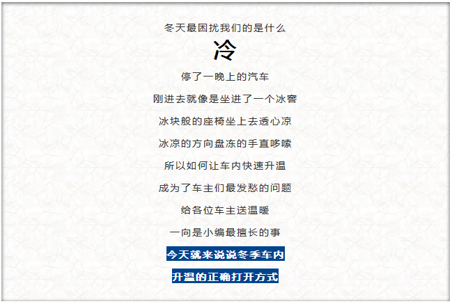 總結(jié)的車內(nèi)快速升溫的方法了