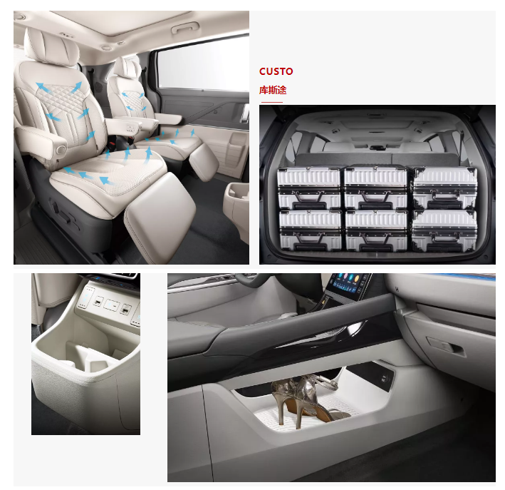 除了7座布局,車內超大空間。庫斯途這位魔法大師,更是設計了12處置物架和8處隱藏空間,通過巧妙的設計將車身的每處空間最大化利用。
