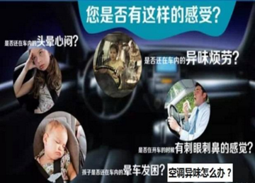汽車空調(diào)在運行中,空氣中80%的微小粉塵和細菌穿過過濾網(wǎng)進入空調(diào)內(nèi)部,與冷凝水粘合后堵塞在蒸發(fā)器上,影響空調(diào)的制冷與散熱。由于蒸發(fā)箱和通風(fēng)管道的潮濕環(huán)境和表面的灰塵為霉菌和真菌的滋生提供了溫床,產(chǎn)生物體腐爛性異味,這些異味會隨著空調(diào)的打開,污染整個車廂內(nèi)部,被吸到人體內(nèi),會導(dǎo)致“汽車空調(diào)病”。
